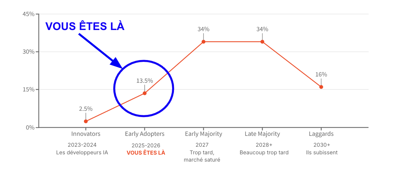 Tu intègres l'IA dès le départ au lieu de devoir rattraper le retard plus tard.